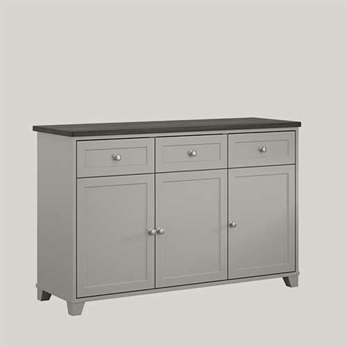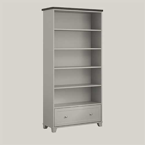 The Easton sideboards are available in two options: two-door and three-door with a matching display top. There are three sizes of bookcases to choose from including a bookcase with a drawer for additional storage. The Easton collection is available with a wide range of finishing options, including a contrast wood grain top and solid colour carcass. The round knob handle comes in three colours to complement the chosen finish: brushed nickel, antique black and satin brass.