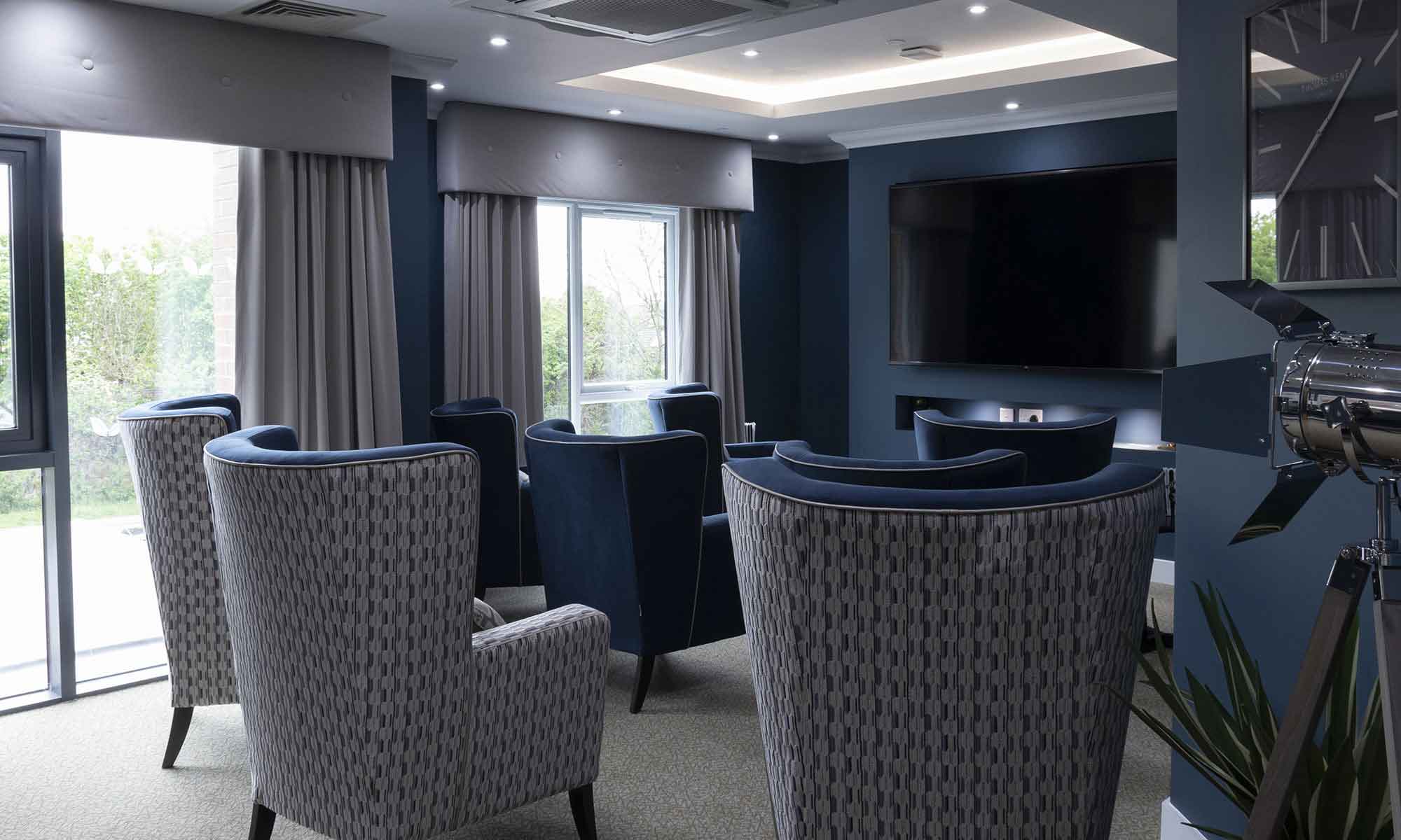 As part of the project, residents have a cinema to enjoy. Sarah chose the Mairena mid and high back chairs which worked really well as they offer two different seat heights. The curved design offers good support for the body and head, whilst adding a little privacy which is perfect for a cinema.