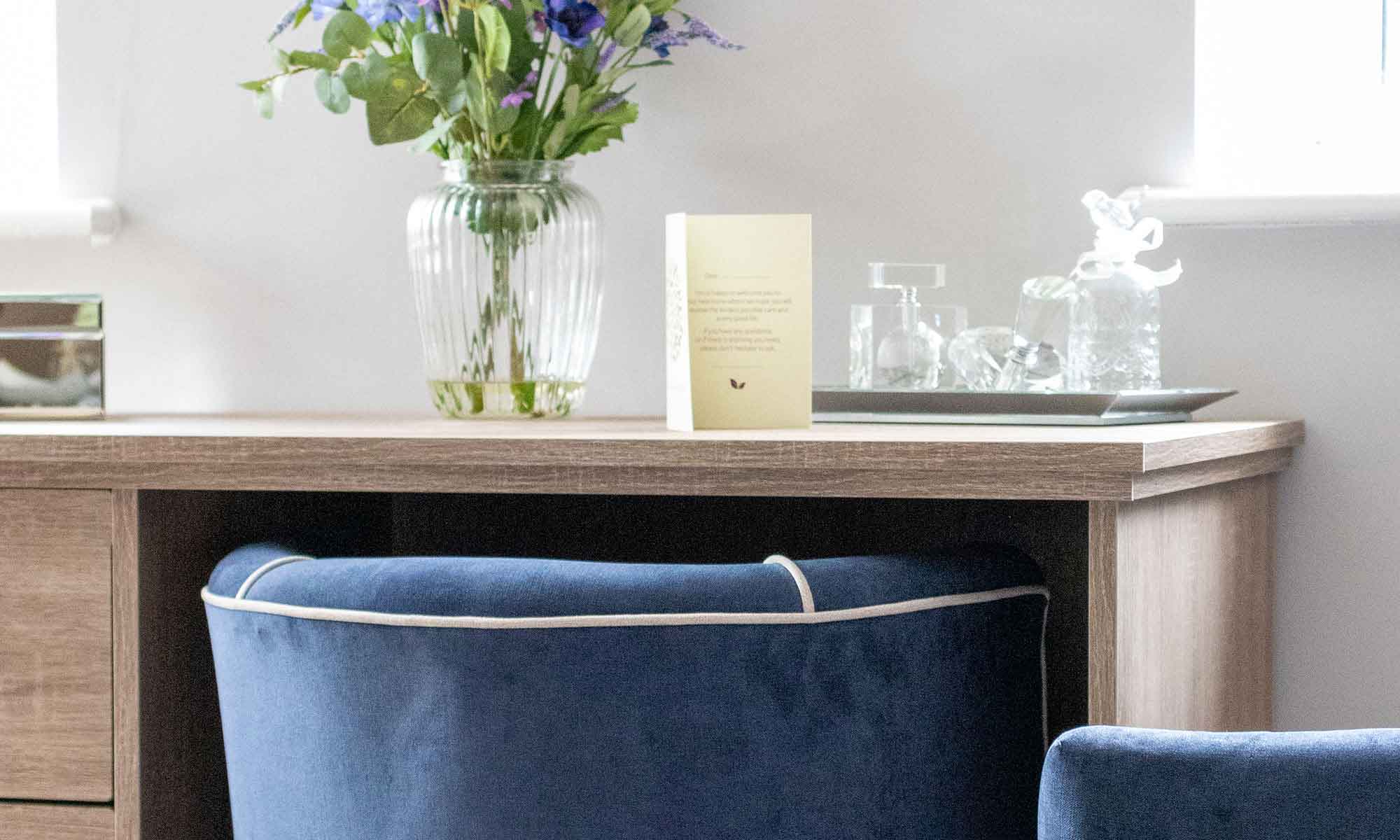 During the design process, HC One specified the Messina Side Chair as a dressing table chair. However due to bedroom layouts, the seat back sat a little high preventing residents from watching television. Our in-house design team created a brand-new side chair called Grana to solve the problem, which has been added to the Shackletons range.